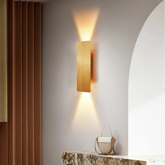 Applique murale dorée moderne : lignes épurées, géométries minimalistes et finitions mates pour un look contemporain.