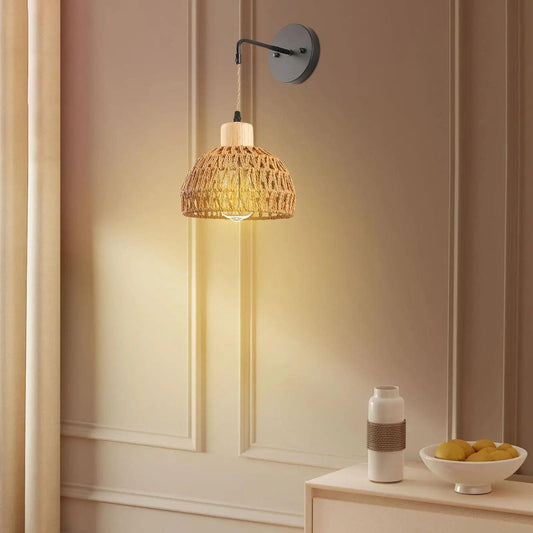 La lumière tamisée produite par une applique en rotin est idéale pour instaurer une atmosphère relaxante dans une chambre, un salon ou une entrée.